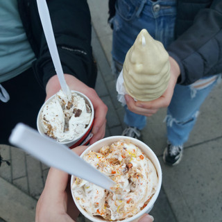 Woensdag ben ik voor het eerst hier naar een ijskraam geweest. Het is best vreemd om ijs te eten terwijl er buiten nog gewoon sneeuw ligt. Maar het was zeker lekker en ook een goed teken dat de zomer er aan komt, of eigenlijk de lente. Je merkt ook echt dat het hier af en toe lekker warm begint te worden. Het was vandaag zelfs 6°C en ik had mijn jas niet eens nodig tussen de middag. De sneeuw is dan ook langzaam aan het smelten, maar de meeste hopen zijn nog steeds groter dan mij.