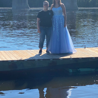 Dinsdag was het dan zo ver. PROM!! Het begon 's ochtends al met het klaarmaken en toen rond 3 uur was het tijd om mijn jurk aan te trekken en het voelde echt heel erg goed om alles samen te zien. Daarna heb ik mam, pap, Jonneke en Ellis gebeld om aan hen als eerste alles te laten zien en het was best wel grappig om hun gezichten te zien. Daarna heb ik de jurk aan de rest laten zien. En Hunter, mijn prom date, z'n mond viel open toen hij mij zag en ook Victor riep een wauw uit van verbazing. Toen Nadine ook klaar was, was het tijd om de corsages om te doen en natuurlijk had ik daar weer ongeveer een half uur voor nodig omdat ik de speldjes er gewoon niet in kreeg. Daarna hebben we eerst foto's in de tuin foto's gemaakt om vervolgens door te gaan naar de Marina. Dit was ooit een restaurant, maar het was wel een hartstikke mooie locatie aan de rivier dus daar hebben we een heel aantal mooie foto's kunnen maken. Ik had namelijk in totaal bijna 300 foto's.